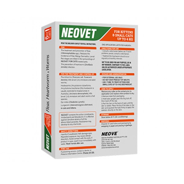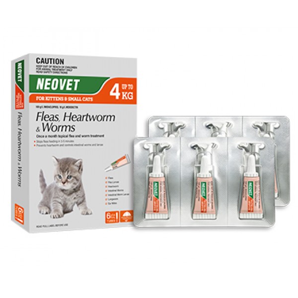 Neovet Flea And Worming For Small Cats and Kittens up to 4kg (8.8lbs) Orange 6 x 0.4mL pipette